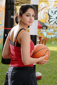 Telugu actress Anushka shetty playing Basketball. Telugu movies super heroine and actress Anushka shetty High quality stills and wallpapers of playing Basketball from a Telugu movie.